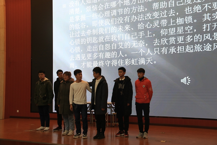 本次汇报演出bat3652019年心理育人优秀实践作品的部分成果,外国语学院心理微电影《你好,嘉络》,获得陕⻄省高校第三届校园心理情景剧二等奖,是课程育人的体现;心理主题班会《相聚石大,你我同行》《沟通从心开始》,将德育与心育有机融合,体现了管理育人的作用。校园情景剧《解开心锁》《最好的自己》 利用与现实生活相似的情景,通过行动表达的方法与技术,重现事情发生时心理活动现实、内心冲突,起到了实践育人的作用。手语舞《国家》更是寄托了石大学子对祖国发展繁荣昌盛的美好祝愿,是今年《心理健康教育》课程的新增的实践成果。