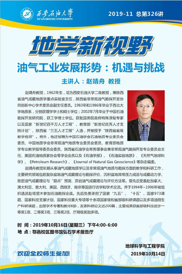 为培养油气勘探所需专业技术人才,强化教师教书育人使命,学院党委在2019年教师节之际,组织全体教师公开宣誓,并身体力行。自觉加强师德师风建设,积极投入课堂教学、主动联系帮助学生。(1)本学期以来组织了“地学新视野”、青年科技英才学术沙龙、心理健康讲座、英语四级等专题学术讲座和报告7次,邀请了诸如二级教授赵靖舟等一批教授和学者深入学生中间,与学生交流,引领学生学术思想、强化学风建设等。(2)强化“三全育人”,强化教师担当,强化“传道、授业、解惑”全过程,学院进一步落实本科生导师制,组织 87位教师担任了2018级本科生的导师,指导学生科学规划大学学习、生活,制定阶段发展目标,改进学习方法,培养专业兴趣,提高学习效率。组织班主任老师对2016级毕业班学生进行考研报考指导。(3)为强化研究生一年级的学习生活指导与学术能力培养,帮助学生快速实现“本-硕”的角色转变、学院举行了研究生学习生活初体验座谈会等、学术沙龙、学术讲座等。邀请专业导师、青年学术英才、辅导员、高年级研究生等深入学生当中,指导学生掌握文献检索技能、培养学生学术科研能力。