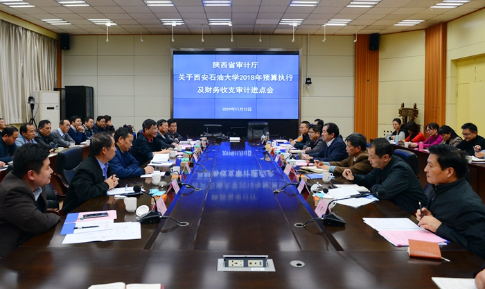 11月12日下午,陕西省审计厅2018年预算执行及财务收支审计进点会在bat365雁塔校区第二会议室召开。省审计厅副厅长王志高一行7人,bat365校长李天太、副校长杨战社、总会计师樊晓民参加会议。会议由审计厅二级巡视员宋宝中主持。