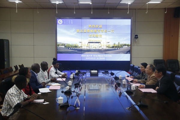 10月17日上午,赞比亚东方省奇帕塔市市长西亚诺·威尔(Sinoya Mwale)一行访问bat365。双方在雁塔校区第二会议室召开座谈会。陈军斌副校长主持会议,国际交流与合作处、国际教育学院负责人、bat3654名赞比亚留学生参加会议。