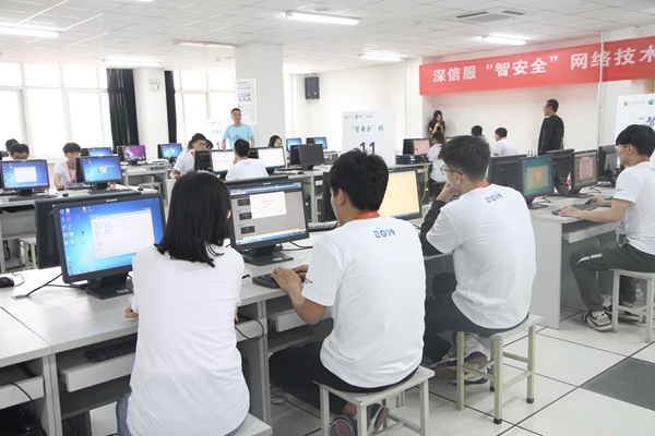 比赛分为上午场和下午场,深信服科技股份有限公司为此次比赛提供了二十余套网络安全设备,其中包括防火墙、入侵检测以及VPN等设备。比赛的主要内容包括网络基础、信息安全、安全检测和防御技术(终端和服务器)等。