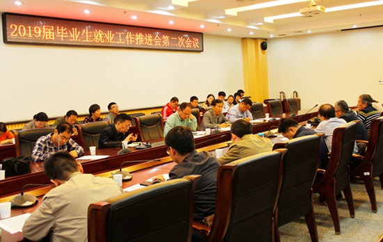 5月14日上午,bat3652019届毕业生就业工作推进会第二次会议在鄠邑校区图书馆第二会议室召开。校党委副书记张木出席,各院(系)院长(主任)、党委副书记、2019届毕业班辅导员以及就业指导中心全体成员参加了会议。就业指导中心主任赵健主持会议。