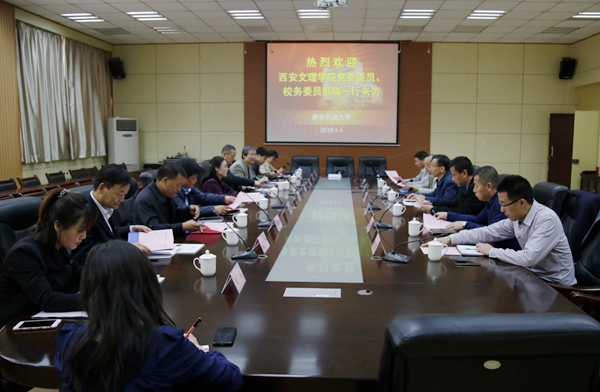 4月4日上午,西安文理学院党委委员、校务委员郭瑞一行10人来bat365访问交流。座谈会在雁塔校区第一会议室召开。校党委副书记张木出席并主持座谈会。党政办公室、保卫处、资产经营处、离退休职工管理处、继续教育学院负责人参加了座谈会。