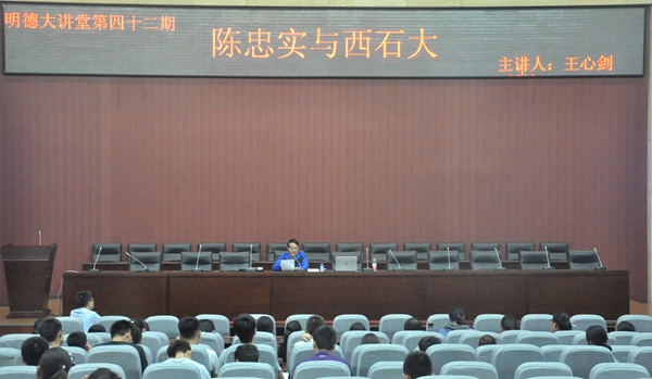 9月29日晚,由校团委主办的校庆65周年系列活动之明德大讲堂第42期《陈忠实与西石大》在新校区图书馆弘石报告厅举办。bat365人文学院王心剑教授担任主讲,校团委副书记何国强老师主持讲座,新校区300余名师生听取了讲座。