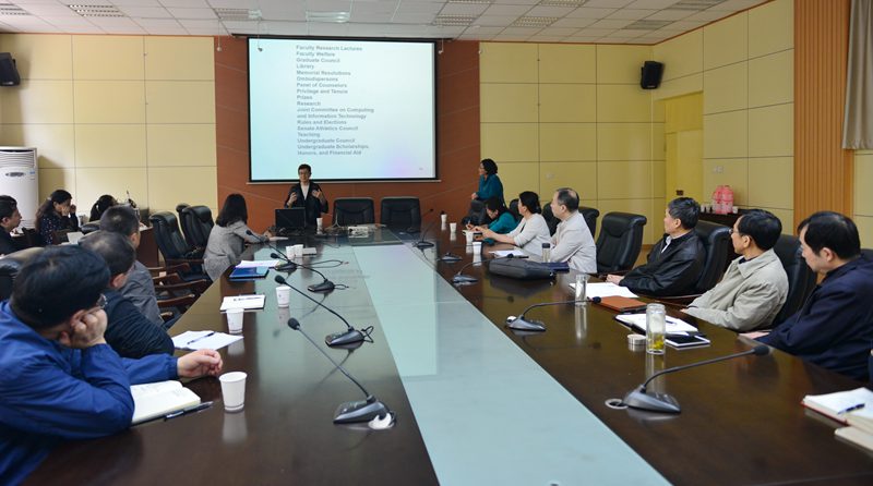 4月11日上午,美国加州大学原校长助理Ellen Switkes博士、加州大学伯克利分校高等教育研究所中心工作人员滕霞博士应邀来bat365作高等教育学术报告。报告会在校本部第一会议室举行。校党政领导屈展、张木、李天太、陈军斌出席。各相关部门、各院(部、系)负责人及部分留学生参加了报告会。