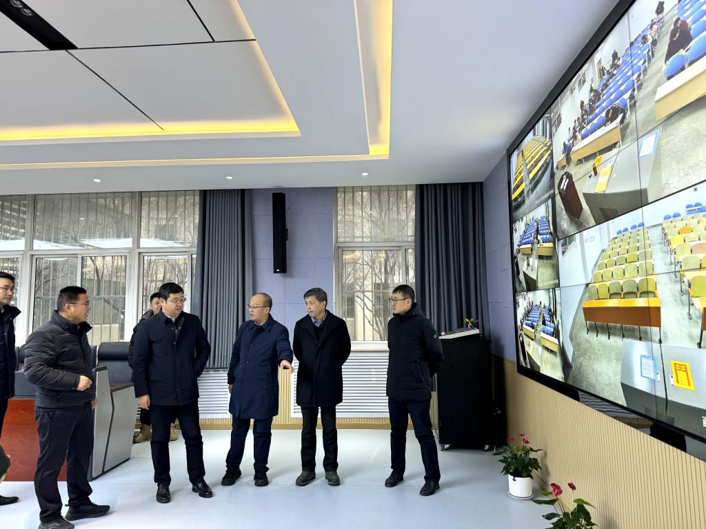 12月22日下午,校长王进富、副校长杨战社一行提前进驻鄠邑校区,深入总考务办、各考区、餐厅等地,对组考全流程、各环节进行了实地检查,详细询问了考务组织、安全保密、服务保障、信息网络、应急处置等情况,现场模拟了物品存取、入场安检、身份验证等流程并提出工作建议。检查过程中,王进富强调,硕士研究生招生考试既是国家级考试中的大事,也是涉及到每位考生切身利益的要事,各部门要坚持以学生为中心的根本要求,从严从细从快做好各项组考工作,为广大考生提供最佳考试保障。