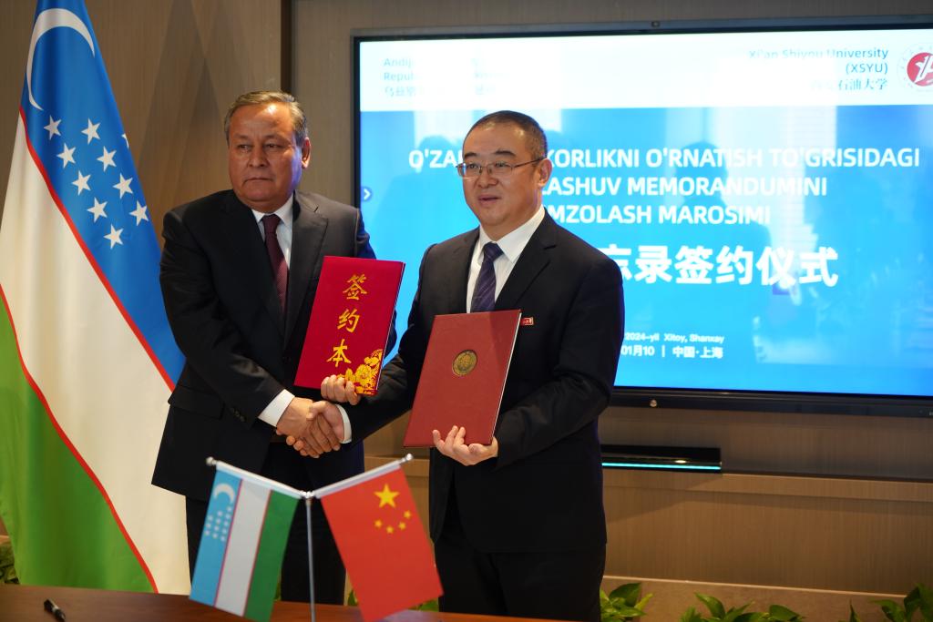 1月10日下午,校党委书记常江在上海与来华访问的乌兹别克斯坦安集延州州长阿卜杜拉赫马诺夫·舒赫拉特贝克·科沙克博耶维奇(Abdurahmanov Shuhratbek Koshaqboevich)一行会见,并签署合作备忘录。乌兹别克斯坦安集延州州政府、波士顿区政府、乌兹别克斯坦驻华大使馆投资工业与贸易部、商务参赞等乌方官员,以及bat365国际交流与合作处、石油工程学院、地球科学与工程学院、化学化工学院、经济管理学院、国际教育学院等部门和学院负责人参加会见。