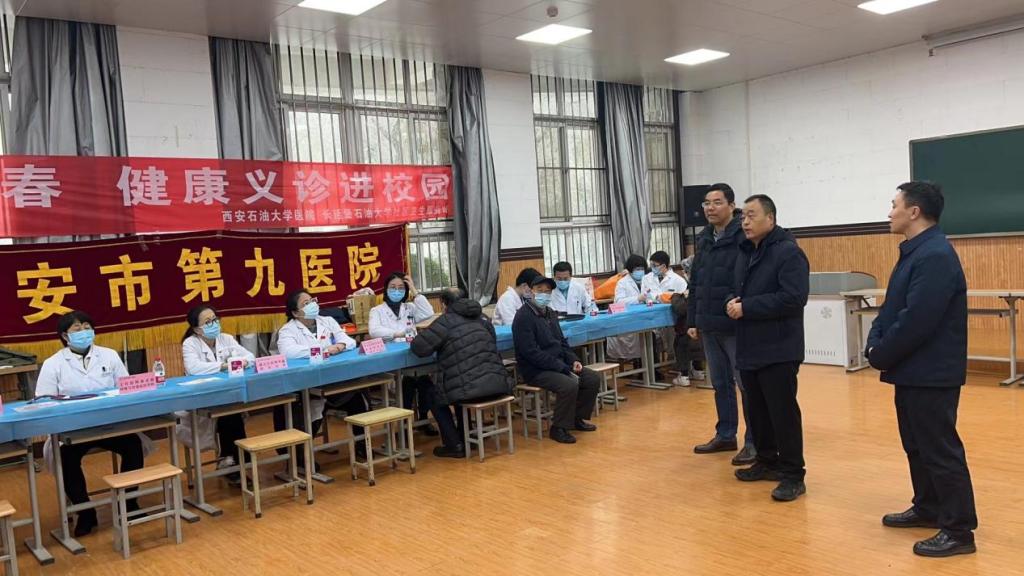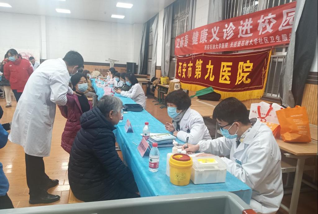 1月16日下午,西安市第九医院组织心血管病院一科、中医科、内分泌科、普通外科、骨科、烧伤整形美容科、康复科、消化内科、呼吸与危重症医学科、神经内科、中西医结合科、眼科、妇产科、超声医学科、体检中心15个专科,20余名医护人员组成了义诊团队来校开展“迎新春·健康义诊进校园”活动。此次活动是贯彻落实学校党委工作部署安排,进一步推进“我为师生办实事”活动,切实为广大师生、家属及社区居民提供更加便利、更高质量的健康咨询与诊疗服务。