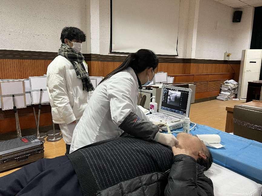 义诊团队现场为前来咨询的人员进行彩超检查、测量血压、血糖,并根据检查情况有针对性地进行常见病、慢性病的疾病知识科普,解疑答惑,叮嘱饮食和用药注意事项,分享中医养生、专业体检方法及合理膳食、运动等方面的知识,鼓励大家积极锻炼,保持乐观情绪,养成健康的生活方式。