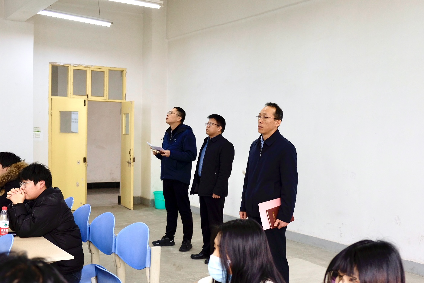 2月26日,学校迎来2024年春季学期开学第一天。为深入了解新学期教学情况,保障各项教学工作稳步进行,校长王进富,校党委副书记、纪委书记、监察专员王辉强,副校长杨战社、苏文甫、程永清、张君涛、张骁勇到鄠邑校区检查教学工作,并分组带领党政办公室、学生工作部(处)、教务处、信息化建设与管理处、后勤处、高教研究与评估中心等部门负责人深入教学一线,对新学期教学运行情况进行全面检查和巡视。