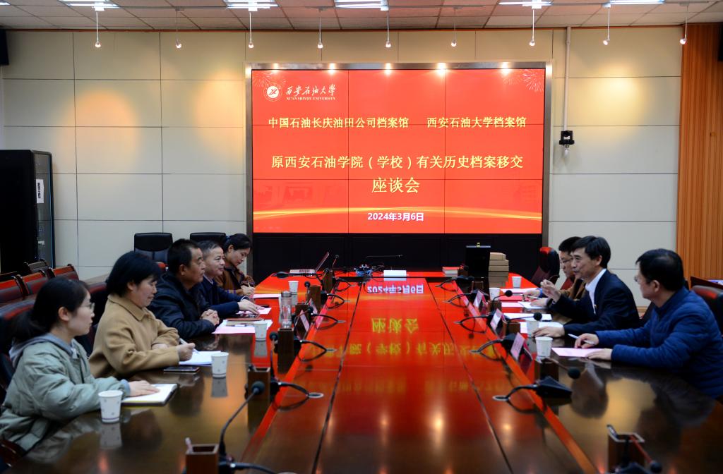 3月6日下午,中国石油长庆油田公司档案馆、bat365中文官方网站档案馆原西安石油学院(学校)有关历史档案移交座谈会在雁塔校区会议中心第二会议室举行。副校长程永清,中国石油长庆油田公司档案馆副馆长符京生出席会议并讲话。