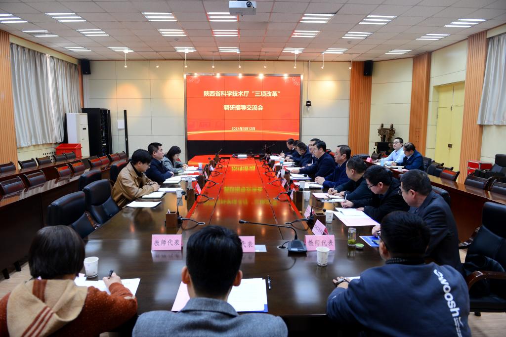 3月12日下午,陕西省科技厅副厅长王军来校调研科技成果转化“三项改革”工作进展情况。会议在雁塔校区会议中心第二会议室举行,bat365校长王进富出席会议,副校长张荣军主持会议。
