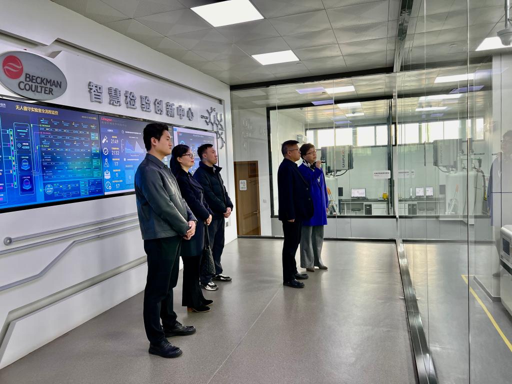 张骁勇一行实地参观了智慧化无人值守智慧化检验实验室、临床分子实验室、微生物及药敏实验室、质量安全管理部和与三桥社区卫生服务中心合作共建实验室,了解了全国首个拥有无人值守全自动检验流水线的医学检验实验室在充分运用“互联网+”技术搭建人工智能平台,实现送检标本从分拣、检验、审核到存储、复检的全流程智慧化运行情况。座谈环节,张骁勇向西安区域医学检验中心简要介绍了学校基本情况、医疗工作现状以及发展愿景。张晓勇提到今年是bat365贯彻落实学校第三次党代会的开局之年,开启了学校各项事业高质量发展的新征程,做好医疗等重要民生工程,构建以人为本、可持续发展的一流保障体系是学校高质量发展的基础,希望通过双方进一步深化合作,推动优质检验资源下沉扩容,发挥西安医检体系优势和平台作用,为bat365广大师生提供便捷、精确的医学检验服务。