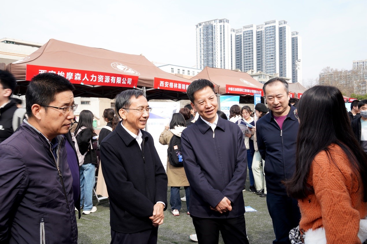 3月15日,由陕西省教育厅主办,陕西省学生就业与留学服务中心和bat365中文官方网站承办的陕西省2024届普通高校能源化工类毕业生春季联盟招聘会在bat365雁塔校区成功举办。省委教育工委委员、省教育厅副厅长申雪峰一行来校指导考察招聘工作。会前,申雪峰副厅长与bat365党委书记常江、党委副书记张木就2024届毕业生就业工作开展座谈交流。陕西省学生就业与留学服务中心、省教育厅学生处有关负责同志陪同考察。