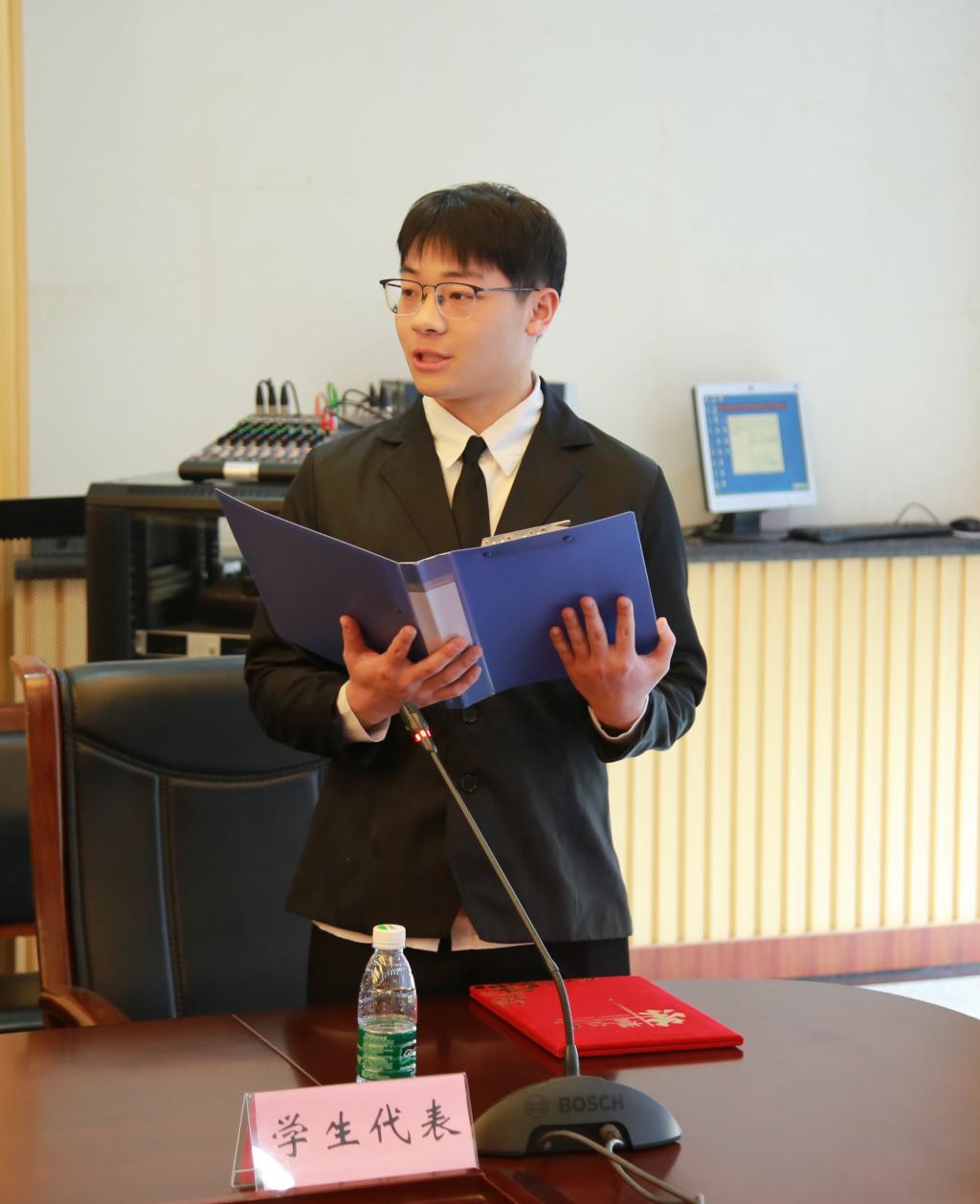 随后进行了“菁英人才奖学金”颁奖仪式,“菁英人才”奖学金获得者代表材料科学与工程学院徐剑同学发言。