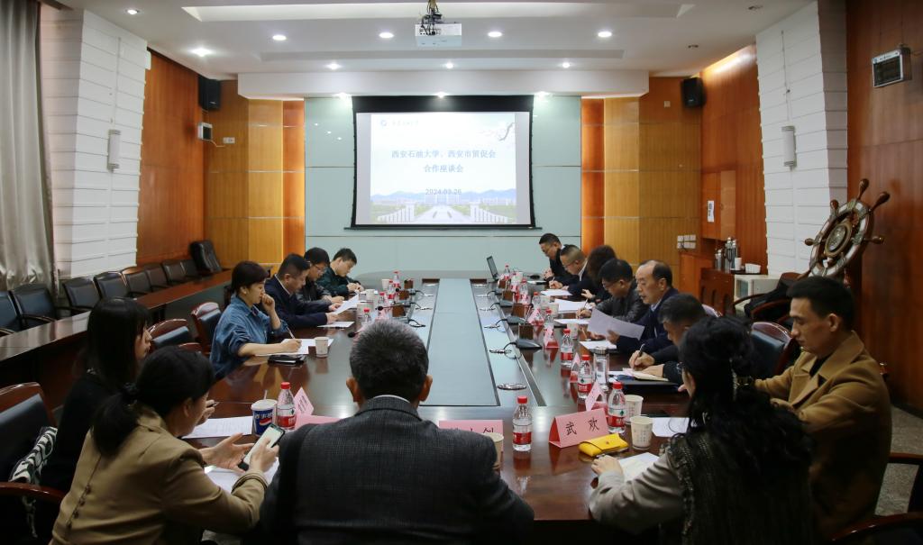3月26日,中国国际贸易促进委员会西安市分会党组书记、会长冉红斌一行4人来校交流,座谈会在雁塔校区会议中心第四会议室举行。bat365总会计师樊晓民出席会议,合作发展处、国际教育学院、经济管理学院相关负责同志及经济管理学院国际经济与贸易专业教师代表参加会议,会议由经济管理学院党委书记谈建勤主持。