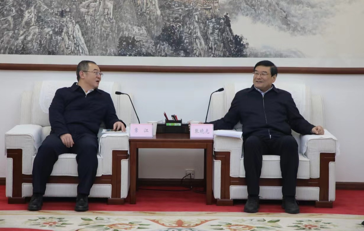 常江向张晓光汇报了学校近年来发展情况,特别是第三次党代会后学校的目标规划,表示希望加强校地合作,发挥学校人才培养、科学研究、成果转化、继续教育等领域的突出优势,依托榆林丰富的红色资源和历史文化资源开展职业培训和研学工作,以榆林建设世界一流高端能源化工基地目标为带动,在榆设立研究院,开展科技创新和成果转化工作,为榆林国家能源革命创新示范区建设提供西石大智力和人才支撑。王进富就学校计划在榆推进产学研深度融合工作和研究院建设情况作了汇报交流。