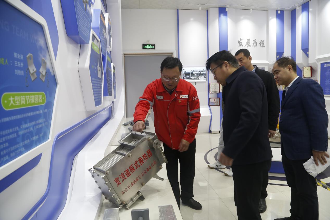 之后,调研组一行参观了河北华北石油迪威尔石化装备工程技术有限公司和河北省劳模和工匠人才创新工作室——华北油田苏立宏创新工作室,迪维尔公司党支部书记王小平,创新工作室负责人苏立宏全程陪同并座谈交流。在听取企业生产概况与技术攻关的介绍后,张骁勇结合企业所需介绍了学校相关科技成果以及人才培养等,希望双方坚持问题导向,在石化装备制造智能化、工程装备新产品研制、专业技术人员在职培训与技能提升等方面,利用双方优势加强科技、人才等深度合作。