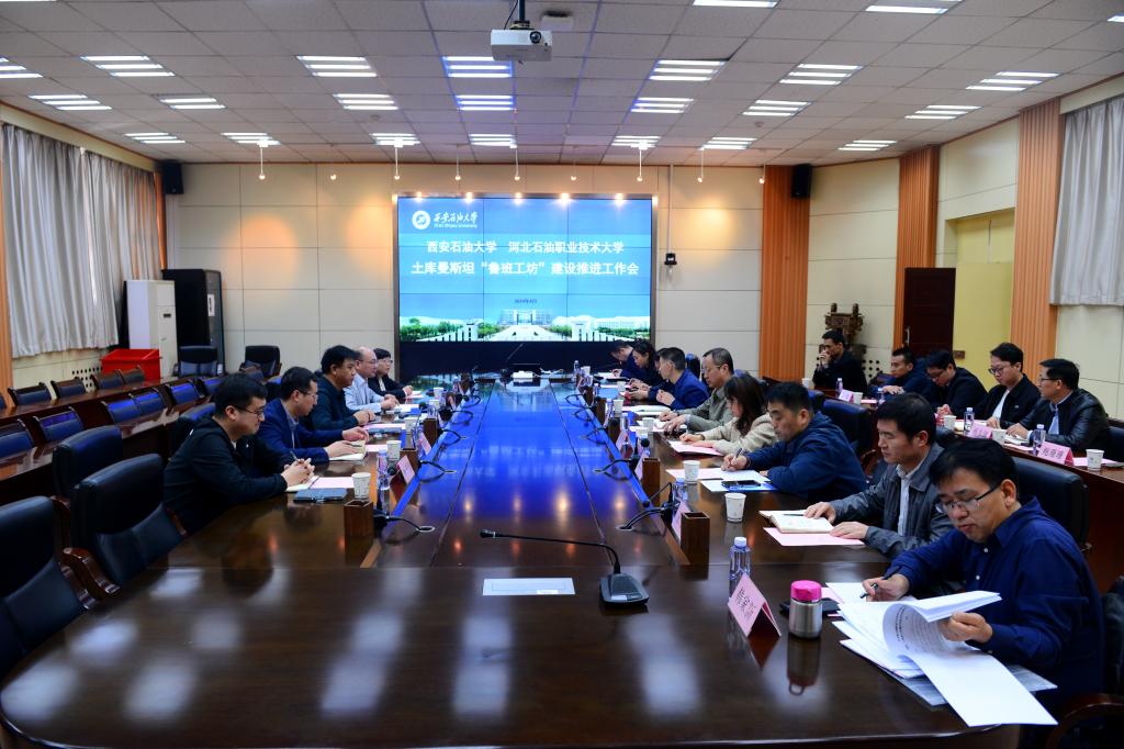 4月8日上午,河北石油职业技术大学计算机系主任王学军、国际交流中心主任吴二刚等一行来bat365参加土库曼斯坦“鲁班工坊”项目建设推进工作会。会议在雁塔校区会议中心第二会议室举行,副校长张荣军出席会议,教务处、实验室管理处、国有资产处、地球科学与工程学院、计算机学院、国际教育学院等相关负责人参会。会议由国际教育学院(丝路能源学院)副院长秦璟主持。
