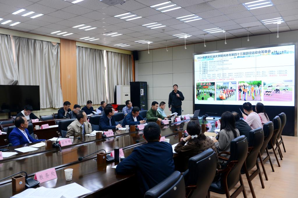 4月11日下午,学校2024年体育运动委员会工作会议暨第四十三届田径运动会筹备工作会在雁塔校区会议中心第二会议室召开。校体育运动委员会主任、副校长张君涛出席会议。会议由体育学院院长李寿邦主持,校体育运动委员会各成员单位负责人参加会议。