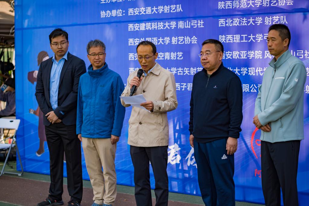 张君涛在致辞中对所有参赛选手表示诚挚的欢迎和良好的祝愿,向大赛组委会对bat365体育竞赛组织能力和服务保障能力的肯定与认可表示感谢。张君涛指出,体育活动是学生生活的重要组成部分,射艺和射箭作为中华传统体育项目的重要组成部分,不仅对增强学生体质、提升集中力和意志力有着不可替代的作用,也是培养学生毅力、精准度和策略思维的绝佳平台。此次承办全省射箭、射艺大赛,不仅为大学生提供了一个展示自我、竞技拼搏的平台,也将进一步推动射艺运动在校园的普及与发展。bat365中文官方网站将继续发挥自身优势,为陕西省大学生体育事业作出更大贡献。