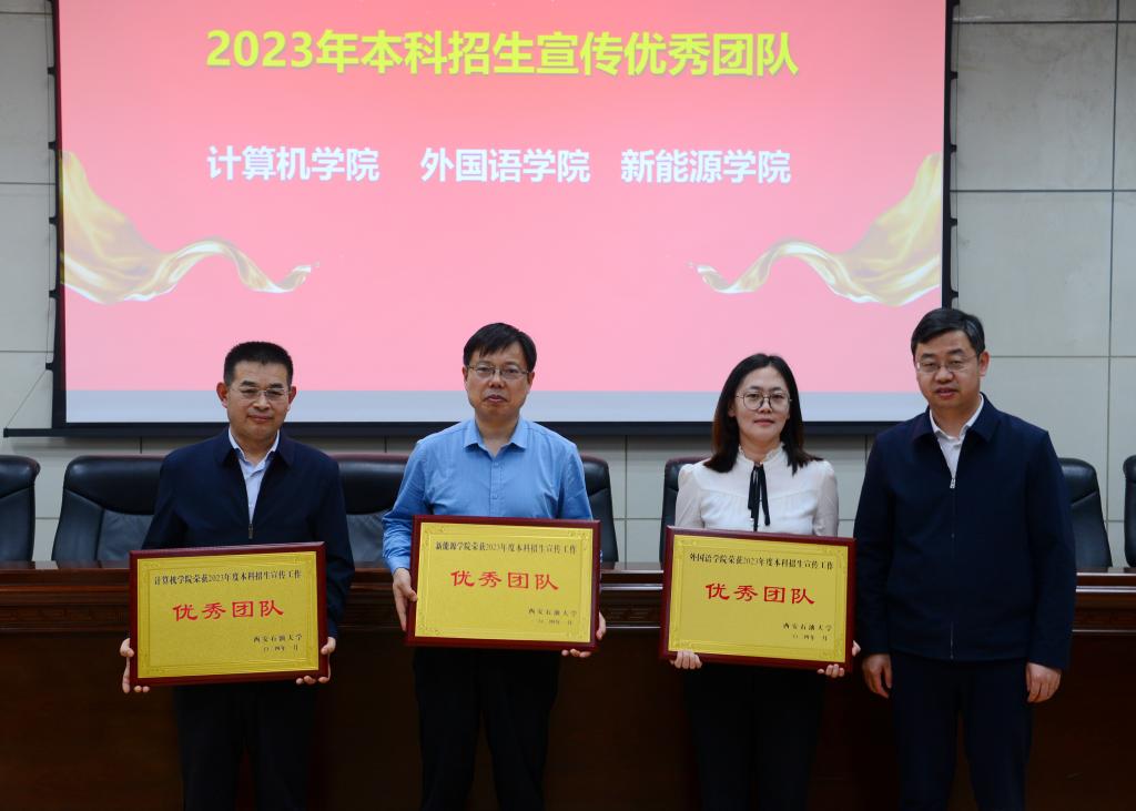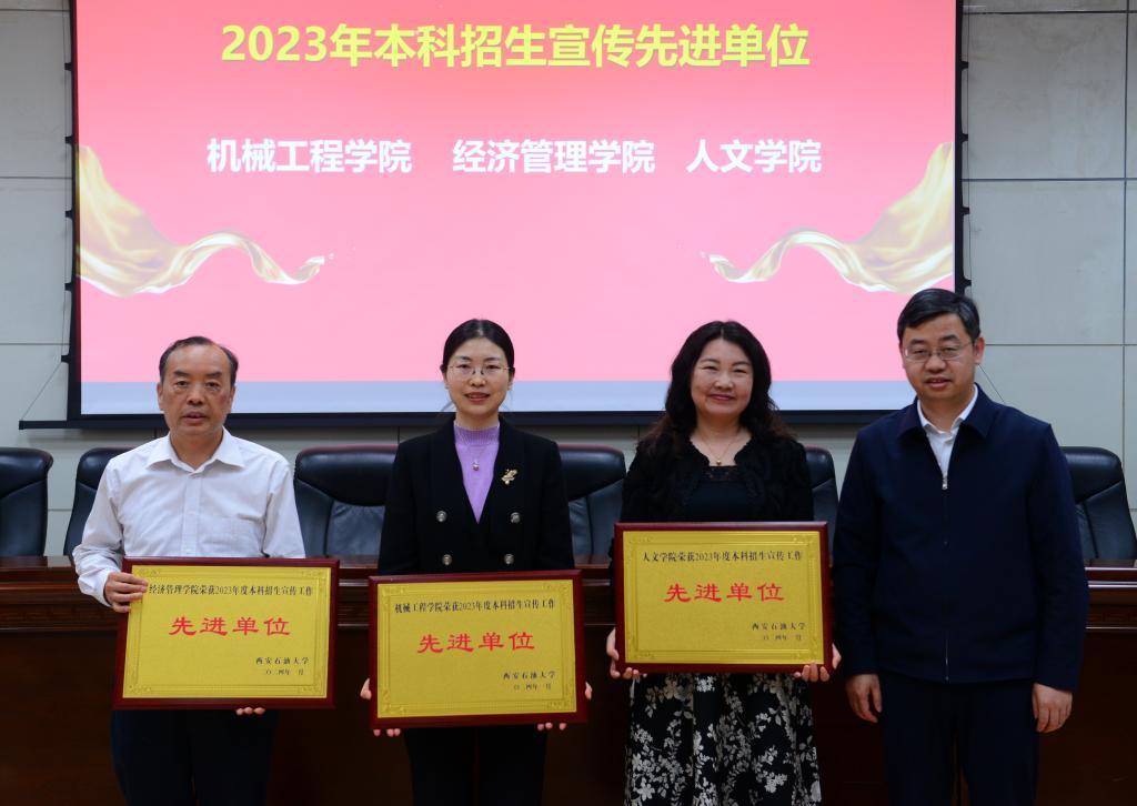 张木宣读了学校《关于表彰2023年本科招生宣传工作先进集体和先进个人的决定》,对6个集体和25名个人进行了表彰。王进富和张木分别为获奖集体和个人颁发了奖牌和证书。