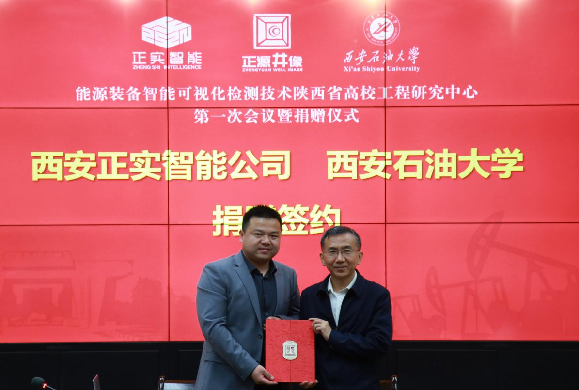 会议还举行了共建单位的捐赠仪式,西安正源井像公司、西安正实智能公司为中心捐赠硬件设备和软件,市场预估值900万元。张木为共建单位授牌,并签订捐赠协议。