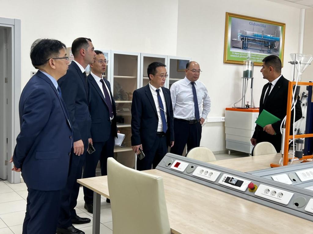 在“鲁班工坊”建设合作院校——卡卡耶夫国际油气大学,代表团与卡卡耶夫国际油气大学先后进行了三场技术交流并对实验实训室建设场地进行踏勘测绘,还受邀参加该校举办的第二届奥林匹克国际信息技术公开竞赛开幕式。该校教学副校长玛梅多夫(Mammedov Batyr),科技处、总务处和有关部门负责人全程陪同参与相关活动。主要交流成果:一是完成“信息系统与技术”“地质资源勘查”两个专业实验实训设备的逐项论证;二是确定两个专业及实验实训室建设以“研究+应用”型的人才培养定位;三是一致同意实验实训室建设方案以中方单位为主导、实验设备以中国产品为标准;四是由中方单位尽快提出实验实训室装修设计需求对接土方大学;五是关于实验实训室建设的设计标准、施工监管、工程验收,以及实验设备的标准注册等由土方大学负责;六是双方须加快推进签署合作备忘录,为师资培训、学生交流交换、专业课程资源建设和实验实训室建设等实质性内容的开展开创新局面。