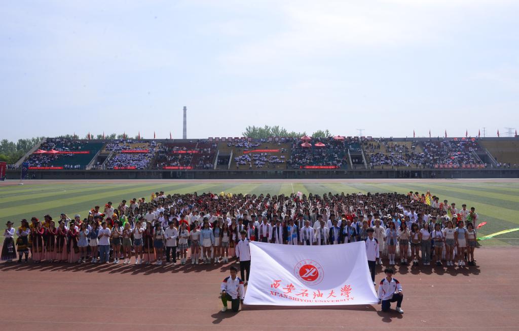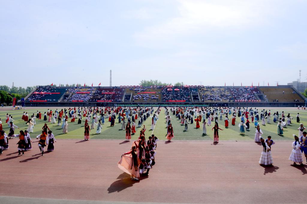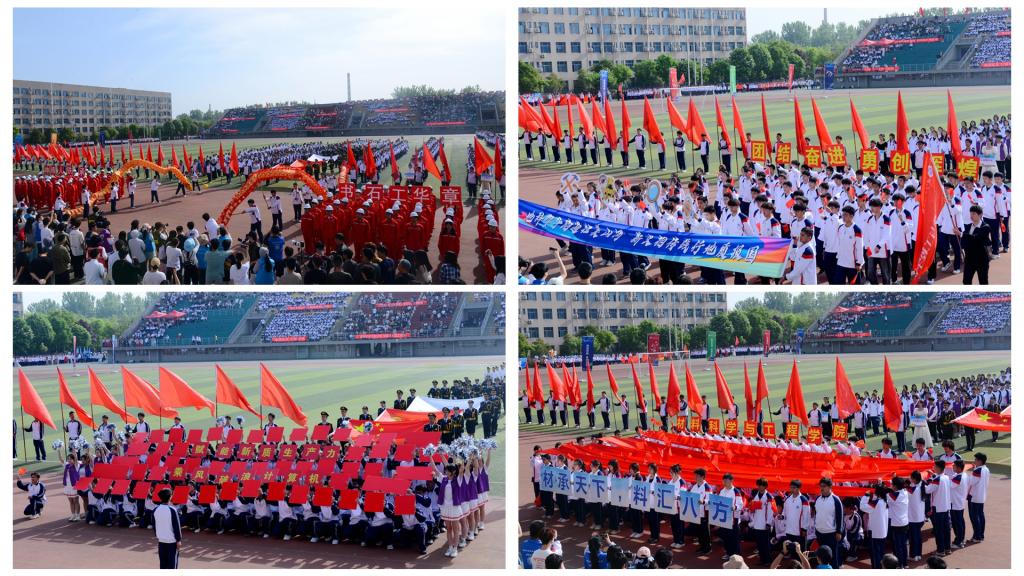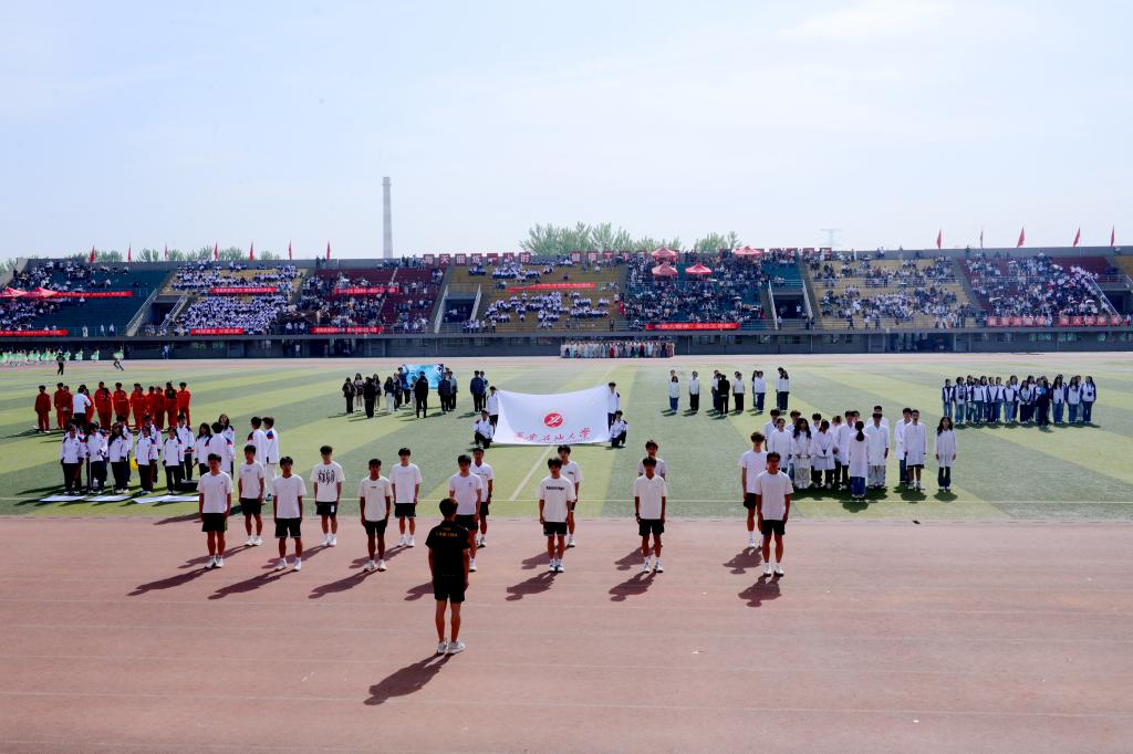 由体育学院组织编排的大型团体操《青春飞扬 活力石大》,气氛热烈、激情澎湃,充分展示了bat365师生积极进取、朝气蓬勃的精神风貌,将运动会开幕式推向高潮。