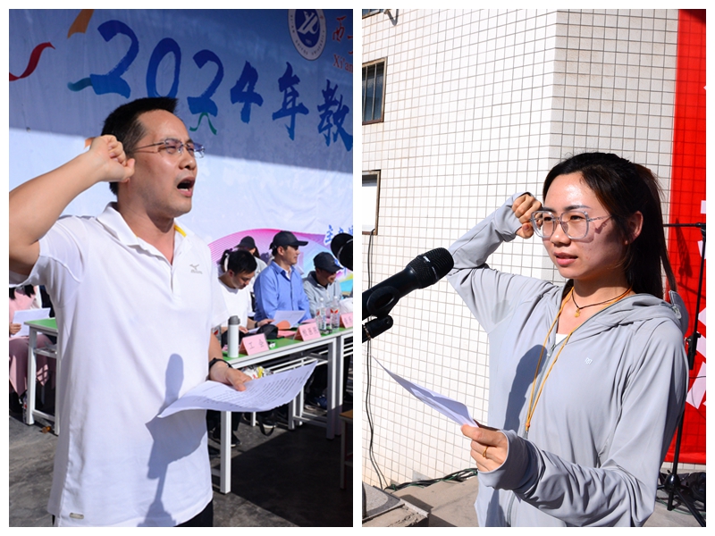 地球科学与工程学院教师吴伟涛、体育学院研究生张配分别作为运动员和裁判员代表宣誓。他们表示,全体运动员将以饱满的热情、昂扬的斗志投入到比赛当中,赛出风格、赛出友谊、赛出水平。全体裁判员、工作人员必将公正执裁、热情服务,保证比赛顺利进行。