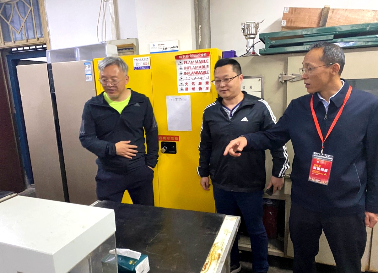 为贯彻落实中省有关实验室安全工作要求,进一步巩固学校实验室安全检查和整改成果,落实实验室安全隐患“检查—整改—再检查”的闭环管理,确保学校实验室安全有序运行,4月30日,副校长张君涛带队对雁塔校区科研实验室开展了“五一”假期前安全隐患整改工作“回头看”专项检查,实验室管理处、科研处、后勤处等部门负责人陪同检查。