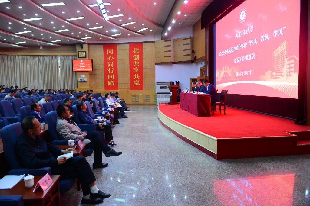 5月7日上午,学校在雁塔校区学术报告厅召开深化干部作风能力提升年暨“作风、教风、学风”建设工作推进会,深入学习贯彻中央和省委关于干部作风建设的有关精神和要求,安排部署学校深化干部作风能力提升年和“作风、教风、学风”建设工作。全体校领导出席会议,全校处级干部和师生党支部书记参加会议,会议由校党委副书记张木主持。