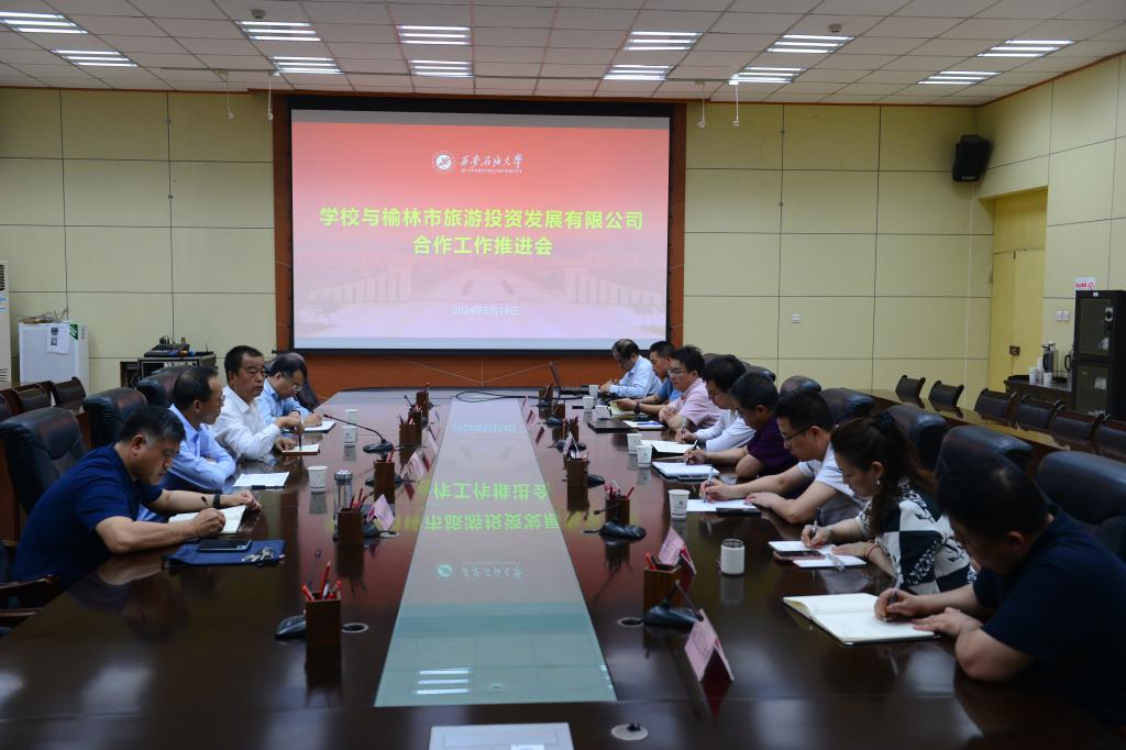 程永清首先介绍了学校与榆林市政府、榆林市旅游投资发展有限公司等合作的历史渊源和当前进展。他深入剖析了榆林市以及榆林市旅游投资发展有限公司拥有的丰富资源和得天独厚的发展条件,为双方的合作奠定了坚实的基础。他强调,双方应秉持资源共享、优势互补的原则,积极策划并推动一系列具有战略意义的合作项目。其中包括联合建立能源化工培训中心、共建人文社科研学基地、合作建设能源化工研究院等。希望学校各相关部门充分发挥职能作用,深入开展调研工作,精心筛选符合双方共同利益和发展方向的合作项目。同时要充分发挥学校在人才与技术方面的优势,精心规划和设计基地建设内容,加快协议签订进程,推动共建项目早日落地实施。