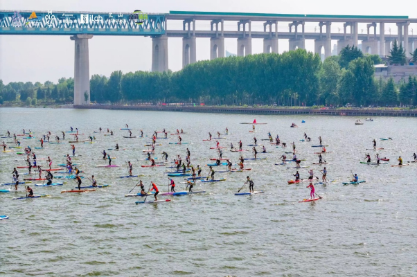 据悉,本次赛事在黄河陕州区段水域举行,由国家体育总局水上运动管理中心、河南省体育局、省体育总会、三门峡市人民政府主办,三门峡市体育局和陕州区政府承办,设置了公开组、大师组、卡胡纳组、高校组及青少年组等多个组别。竞赛涵盖男女个人赛、个人200米竞速赛、200米趴板划水赛、8公里比赛以及团体200米接力、200米龙板赛等多个项目,为桨板爱好者提供击水黄河、浪遏飞板的平台。共有来自全国各地的700名桨板赛选手和体育运动爱好者相聚碧水黄河,共同体验沿黄生态与水上运动的激情碰撞,感受“黄河明珠、天鹅之城”与“体育强国、健康中国”的激昂融合。