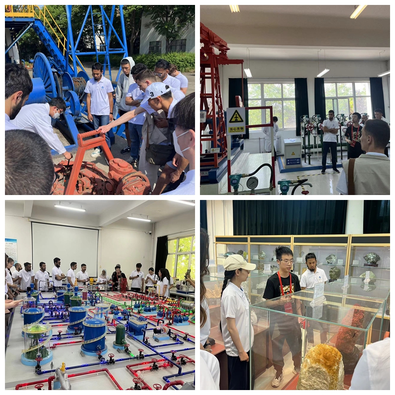 接着留学生们来到学校工程训练中心,分别参观了采油和钻井实训室、集输实训平台和地球科学科普教育地质实训平台,大家认真聆听了老师介绍,工程训练中心在石油采、炼、储存等多方面的先进技术模型展示引起在场留学生的广泛兴趣。