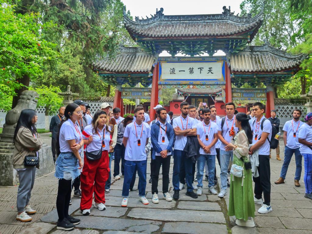 随后留学生们来到武侯祠和诸葛古镇,亲身感受武侯文化和三国文化,大家先后参观了武侯祠、郡丞府、天下武侯祠展览馆等,并体验了360度极限飞球“秦岭·翱翔”项目,体验了一场“沉浸式”的文化盛宴。