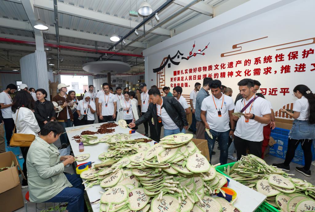 当日下午,留学生们抵达汉中市南郑区,某藤编厂房里正是一派忙碌景象,在汉中市南郑区行政审批局局长石艳春和黄官镇副镇长陈琰的带领下,留学生们见到了国家级非物质文化遗产汉中藤编传承人陈良顺,他正在指导村民们编织藤椅,一根根藤条在村民手中变成一件件生活用品,给乡村振兴发展带来了新的机遇和希望。