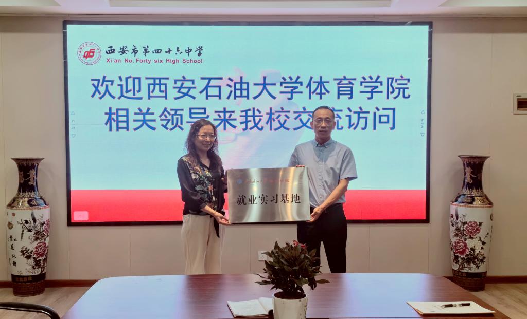 座谈会后,张君涛为第四十六中学颁授了“bat365中文官方网站就业实习基地”牌匾,并赠送了纪念品。苟毅飞代表体育学院与第四十六中学签订了共建就业实习基地协议。