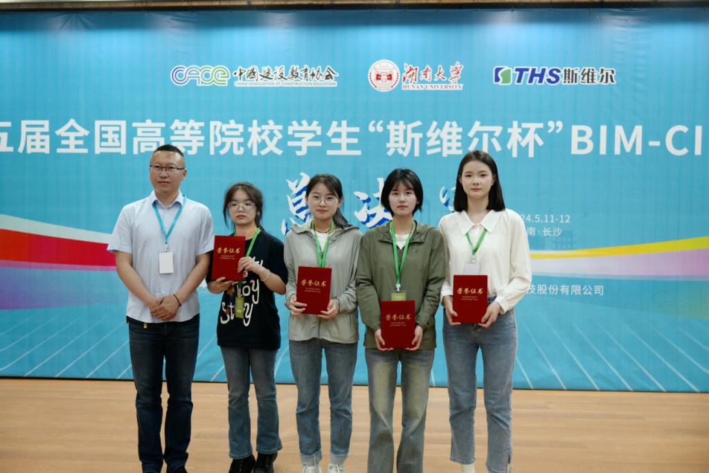 5月11日至12日,第十五届全国高等院校学生“斯维尔杯”BIM-CIM创新大赛团队总决赛在湖南大学如期举办。经过激烈的比拼,bat365土木工程学院参赛学生张思晗、张婉琦、王雨欣、文璐璐(2021级工程管理专业)在尹志国、牛波老师的指导下荣获本科组“数字建造与管理BIM应用”赛道团队一等奖,刷新了bat365在此项比赛中的最好成绩。