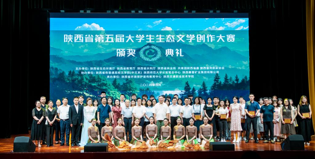 6月13日下午,由陕西省生态环境厅、省教育厅、省水利厅、省林业局、团省委和省戏剧家协会主办的陕西省第五届大学生生态文学创作大赛颁奖典礼在陕西交通职业技术学院大学生艺术中心举办。本届大赛中,bat365共有6名学子获奖,其中人文学院中文系张海洋和周佳伟两位同学分别凭借小说《血色羽毛》和《会飞的狗》斩获大赛二等奖和三等奖。中文系黄陈霖、韩香、袁欣欣,新闻系杨立彬等同学的作品分别获得优秀奖。bat365学生作品获奖数量再次位居陕西高校前列。