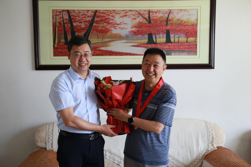 校党委副书记程永清走访慰问了师仰岱退休老党员,为老党员佩戴了“光荣在党50年”纪念章。程永清详细询问了师老师的健康状况和生活近况,并致以亲切的问候和诚挚的祝福。他在与老党员交流时指出,党中央决定为党龄50年以上的党员颁授纪念章,充分体现了以习近平同志为核心的党中央对老党员的关爱关怀。他希望老党员保重身体,继续发扬老党员的优良作风,持续关心、关注学校事业发展。