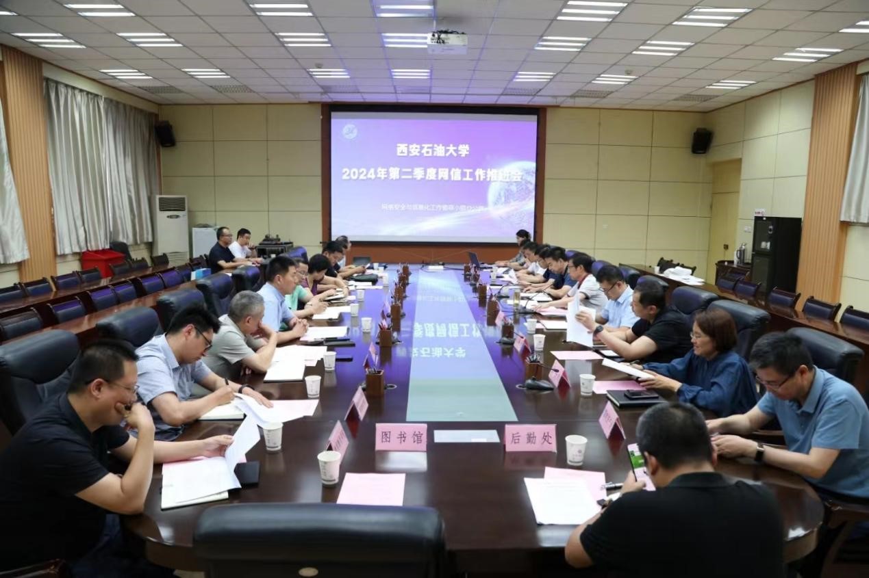 为深入贯彻落实学校第三次党代会精神,加速推进“智慧办学”,7月4日下午,学校在雁塔校区会议中心第一会议室召开2024年第二季度网信工作推进会。会议由学校网络安全与信息化工作领导小组副组长、副校长苏文甫主持,各网信工作领导小组成员单位负责人参加会议。