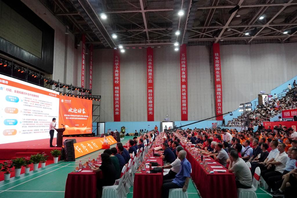 学校还为返校校友精心准备了文艺演出,由校友代表和在校师生联袂上演,音乐系2024届校友张程杰献唱《故乡的云》,音乐系2020届校友余胜生献唱《恋曲1990》,音乐系2019届校友梁芊芊献唱《再回首》,经济管理学院2002届校友郑伟献唱《风吹麦浪》,校友合唱《少年》表达了对校友的真挚欢迎;音乐系2006届校友何振、音乐系2019届校友鱼紫薇和音乐系2024届校友胡婕雯等表演的歌伴舞《节日欢歌》为大会增添了节日气氛,将对学校的美好祝福淋漓展示;4位校友朗诵的《西石大人》则将大会推向了情感高潮,字里行间流露出对母校的热爱。