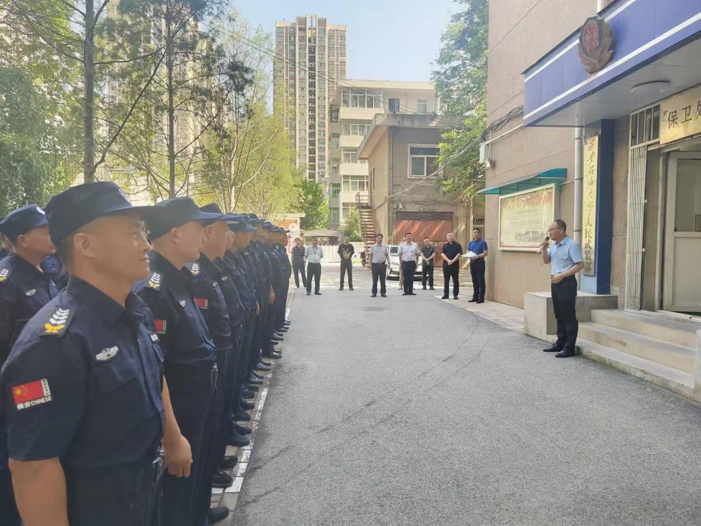 7月31日上午,bat365在雁塔校区保卫部(处)办公楼前举行了雁塔、明德校区新中标保安公司交接仪式。副校长赵健出席活动并讲话。