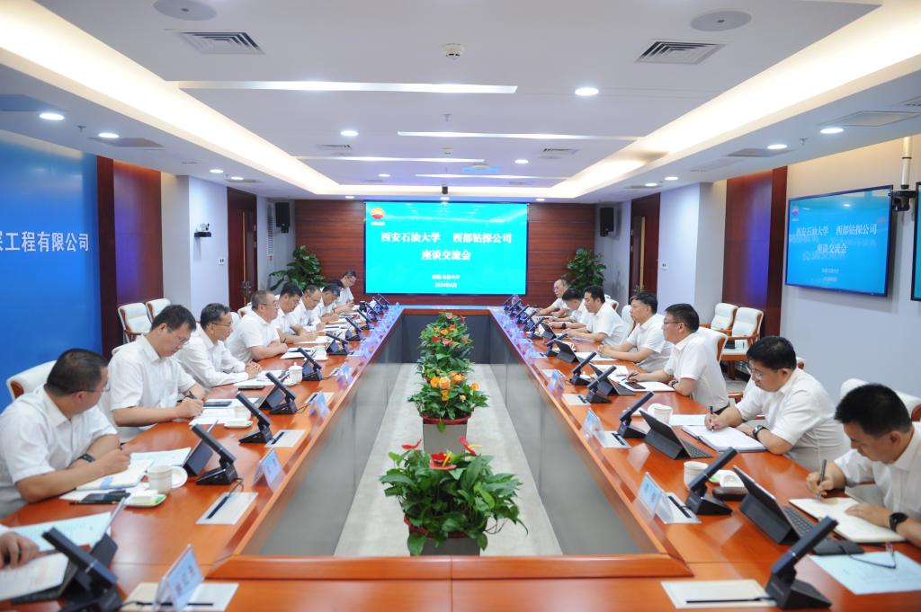 在中国石油西部钻探工程有限公司走访期间,公司执行董事、党委书记潘登代表公司对常江、校长王进富一行来访表示热烈欢迎,对学校多年来在人才、科技等方面给予公司的重要支持表示感谢。双方进行了座谈交流,针对人才培养、科研攻关、基地建设、学生就业、继续教育培训等多个领域深入交流,初步达成多个合作意向。该公司党委委员、副总经理唐青隽,副总工程师王军平等参加座谈交流。