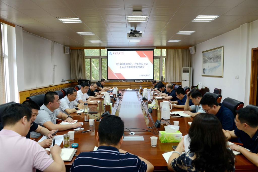 王进富充分肯定了暑期学校及各有关部门走访企业取得的初步成效,并对下一步合作项目推进工作进行全面部署。他指出,面对新形势,学校要更加注重开放办学和融合办学,更加主动地对接政府和企业的发展需求,高质量探索和实践产教融合和校企合作。他强调,各有关部门要积极主动融入学校发展大局,对外合作交流,对内沟通协作,持续完善多方协同育人机制和教师职称评审和考核机制,创新人才培养模式,切实提高人才培养质量,不断增强服务企业高质量发展的能力和水平。他要求,针对当前各个校企合作意向,一是要任务清单化。深入挖掘、系统梳理校企合作的各项工作任务,形成并分解工作清单,进一步明确目标、细化分工、落实责任,推动各项重点任务落地见效。二是要清单协议化。全面全方位与企业开展各项合作,通过主动对接企业的各项需求,梳理学校现有的优势和资源,把校企合作的工作任务清单逐项转变成工作协议,进一步推动落实落地。三是要落实组织化。各有关部门要树立“一盘棋”思想,要在组织领导上再加强,在工作责任上再靠实,在工作推进上再精准,对照工作任务清单和时间节点,加强统筹协调,强化责任担当,沟通协作,密切配合,形成合力,全力以赴确保合作项目落地见效。