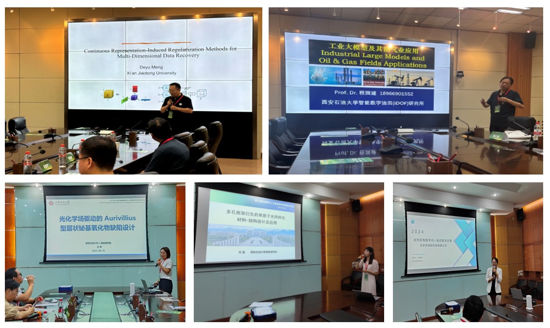 在“新能源+ ”“人工智能+ ”两个分论坛中,来自西安交通大学、西安理工大学及bat365的32名师生做了专题报告,报告由折延宏、高国旺、肖美霞、安敏荣、王磊、吕英、毕佳颖、刘潼八位教师主持。国家级高层次人才、西安交通大学孟德宇教授做了题为“Continuous Representation-Induced Regularization Methods for Multi- Dimensional Data Recovery”的报告;bat365程国建教授做了题为“工业大模型及其油气业应用”的报告;bat365吕英副教授做了题为“光化学场驱动的Aurivillius型层状铋基氧化物缺陷设计”的报告;bat365青年教师刘潼做了题为“多孔框架衍生的单原子光热转化材料-结构设计及应用”的报告。另外,西安建筑科技大学、厦门理工学院、北京伊诺凯科技有限公司等单位及bat365研究生做了28个专题报告。