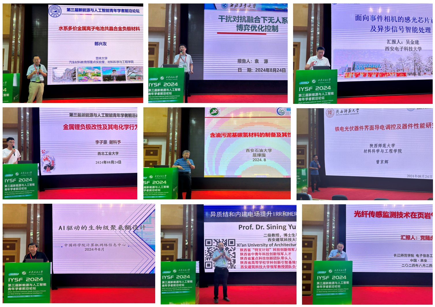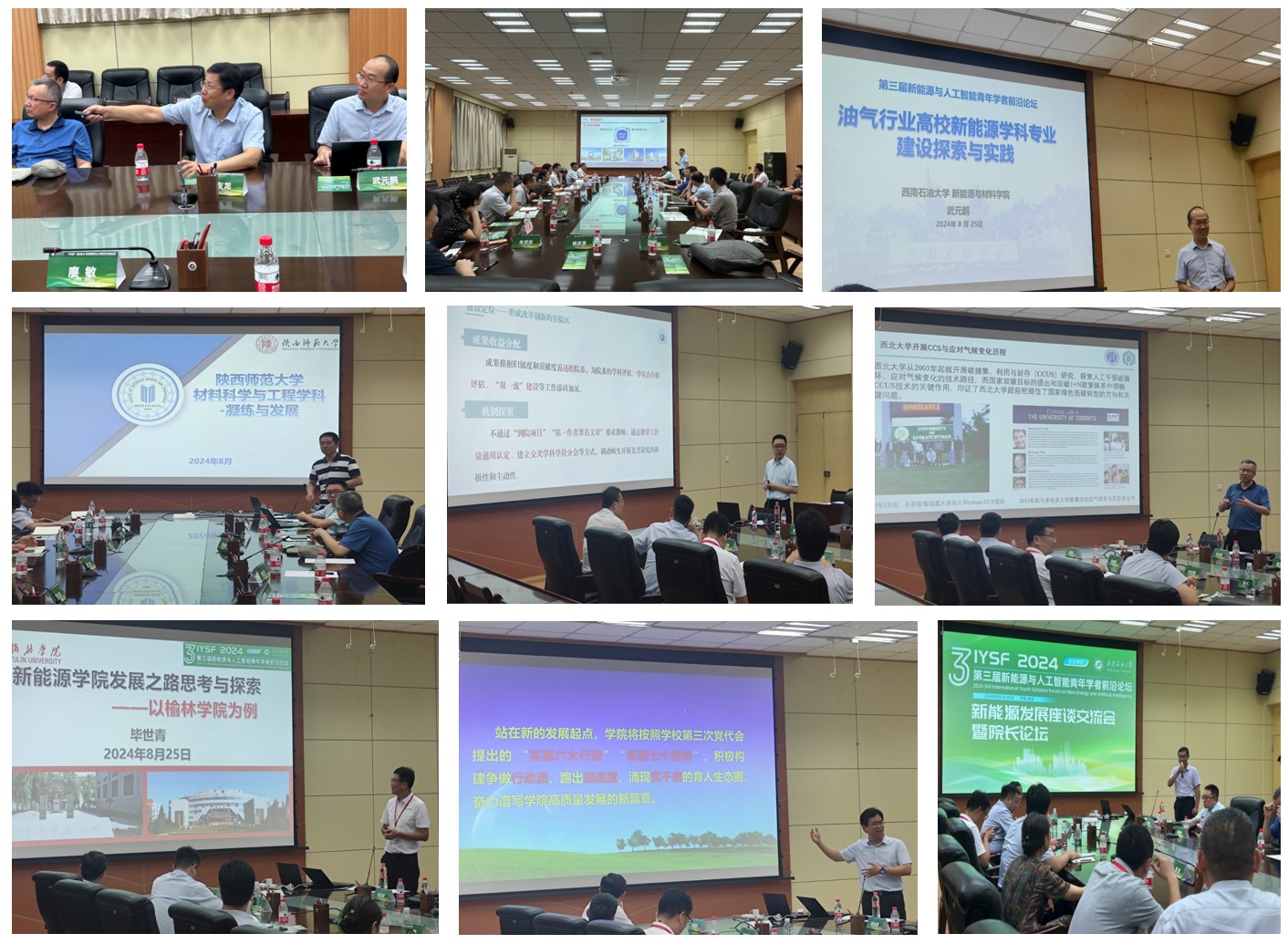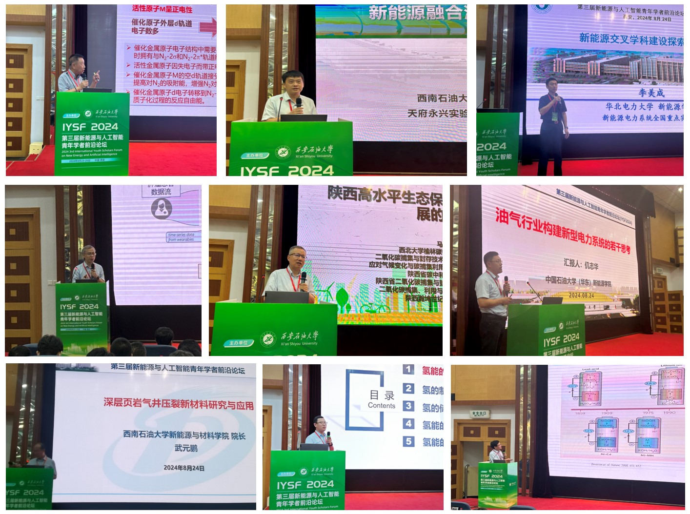 国家杰青、长江学者、吉林大学蒋青教授做了题为“电化学合成氨钼基催化材料的设计与制备”的报告;国家杰青、广东省人民医院主任医师刘再毅教授做了题为“肿瘤多模态影像AI研究进展”的报告;国家杰青、长江学者、西南石油大学副校长周莹教授做了题为“新能源融合油气资源开发利用”的报告;长江学者、国家万人计划科技领军人才、华北电力大学新能源学院院长李美成教授做了题为“新能源交叉学科建设探索与实践”的报告;国家高层次人才、西北大学碳中和学院首席科学家马劲风教授做了题为“陕西高水平生态保护与绿色高质量发展的路径”的报告;中国石油大学(华东)新能源学院副院长仉志华教授做了题为“油气行业构建新型电力系统的若干思考”的报告;西南石油大学新能源与材料学院院长武元鹏做了题为“油气行业高校新能源学科专业发展探索与实践”的报告;中国石油大学(北京)杨帆教授做了题为“氢能产业发展现状与展望”的报告;国家百千万人才工程入选专家、西安理工大学李喜飞教授做了题为“锂离子电池三元正极材料界面改性的研究”的报告;国家万人计划科技创新领军人才、长江学者、国家优青、吉林大学郎兴友教授做了题为“水系多价金属离子电池共晶合金负极材料”的报告;国家优青、西北工业大学袁源教授做了题为“干扰对抗融合下无人系统博弈优化控制”的报告;国家优青、西安电子科技大学吴金建教授做了题为“向事件相机的感光芯片设计及异步信号智能处理”的报告;国家级高层次人才、西北工业大学谢科予教授做了题为“金属锂负极改性及其电化学行为调控”的报告;陕西师范大学材料科学与工程学院院长曾京辉教授做了题为“铁电光伏器件界面导电调控及器件性能研究”的报告;国家百千万人才工程入选专家、bat365中文官方网站屈撑囤教授做了题为“含油污泥基碳氢材料的制备及其性能研究”的报告;中科院百人计划(A类)杨小渝教授做了题为“智算驱动的生物基聚氨酯设计”的报告;陕西省“特支计划”科技创新领军人才、西安建筑科技大学云斯宁教授做了题为“异质结和内建电场提升太阳电池和制氢催化剂的性能”的报告;长江师范学院电子信息工程学院院长党随虎教授做了题为“光纤传感监测技术在页岩气开发中的应用”的报告。