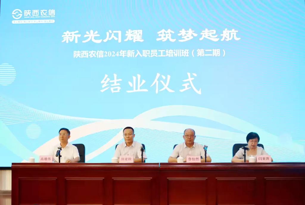 8月29日上午,陕西农信“新光闪耀 筑梦起航”2024年新入职员工培训(第二期)在bat365明德校区报告厅举行结业仪式。陕西省农村信用社联合社(以下称“省联社”)党委副书记、主任田亚欧,省联社党委副书记鲁怡然出席仪式。省联社领导、集训队工作人员及全体学员对bat365工作人员在培训期间的精心组织和辛勤付出给予了高度评价。