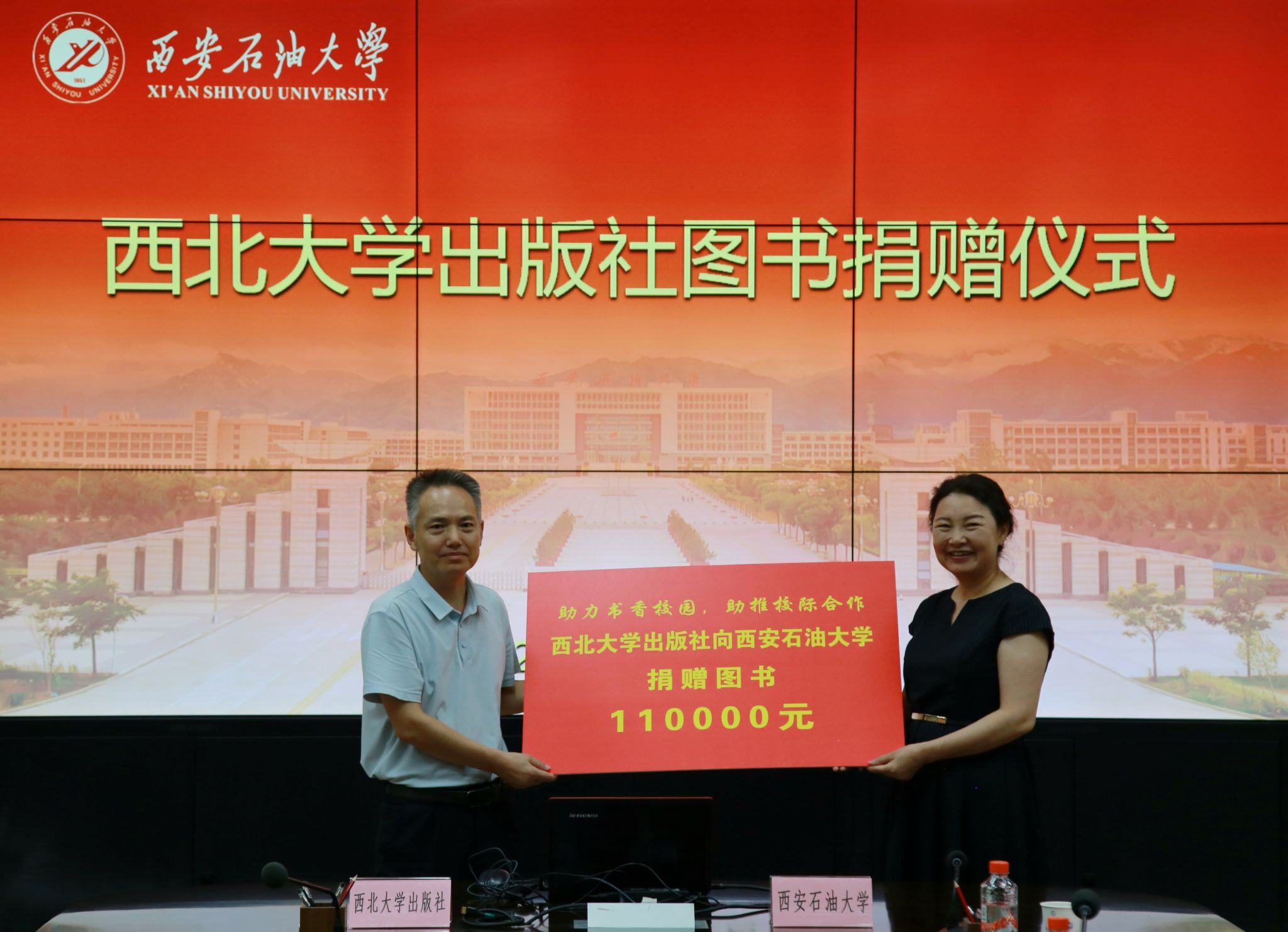 张荣军指出,西北大学与bat365中文官方网站有着深厚的传统友谊、素有渊源,两校血缘、地缘、人缘相连,血脉相通,两校签署的战略合作协议,是进入新时代校际合作的进一步升级和深化。西北大学出版社此次捐赠的图书,涵盖了文学、社会科学、自然科学、综合图书等相关内容,体现了西北大学科研和学术的优势特色,具有重要社会价值和学术意义。“一本好书,一扇窗口”。此次图书捐赠不仅丰富了学校文献资源,还将进一步提升师生的阅读品质,推动学校书香校园建设。双方要以捐赠图书为契机,携手共进,不断加强合作、加深友谊,共同推动两校事业高质量发展。